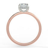 The ECO 8 ring showcases a custom-made 4 claw cushion cut hidden halo diamond solitaire, elegantly designed to blend vintage charm with modern sophistication. The cushion cut diamond is securely held by four intricately crafted claws, allowing its unique facets to capture and reflect light beautifully. Encircling the centre stone is a hidden halo of delicate side diamonds, adding an enchanting sparkle that enhances its allure.