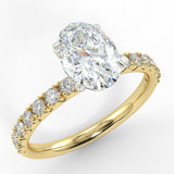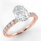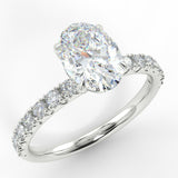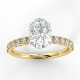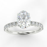 THE ECO 2 custom-made oval cut diamond solitaire with side diamonds is a breathtaking blend of contemporary design and classic elegance. At its heart, this ring features a stunning oval cut diamond, complemented by 16 side diamonds totaling 0.32ct, which enhance its radiant sparkle.